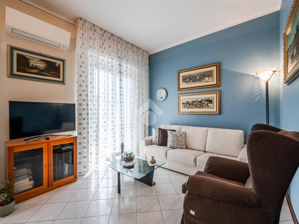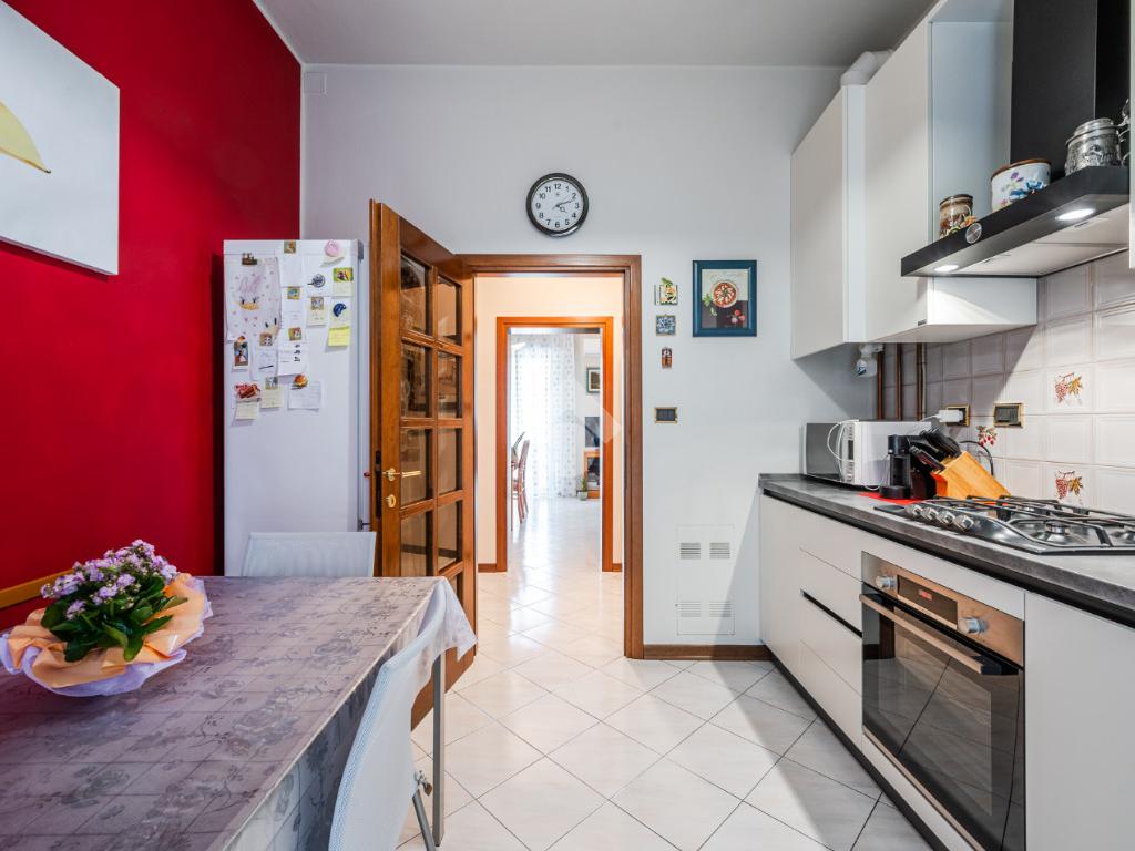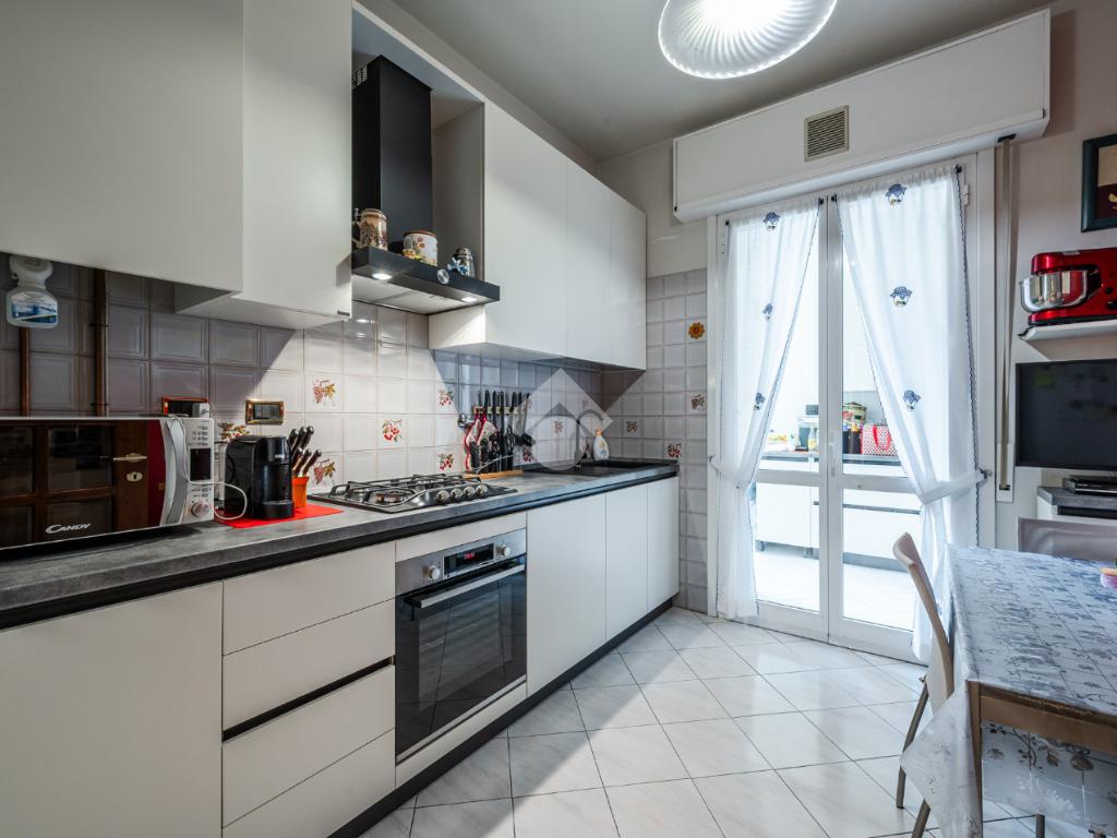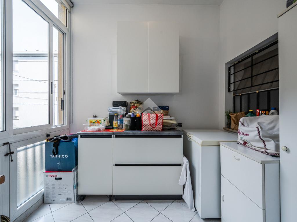 L'appartamento è posto al piano primo e si compone di ingresso, soggiorno ampio con balcone, cucina abitabile con balcone ampio e finestrato (attualmente adibito a dispensa).