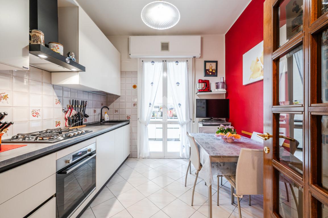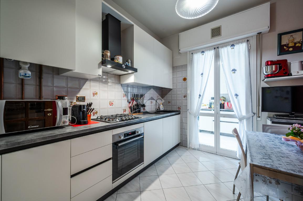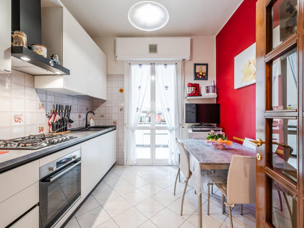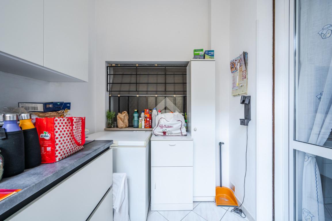 L'appartamento è posto al piano primo e si compone di ingresso, soggiorno ampio con balcone, cucina abitabile con balcone ampio e finestrato (attualmente adibito a dispensa).