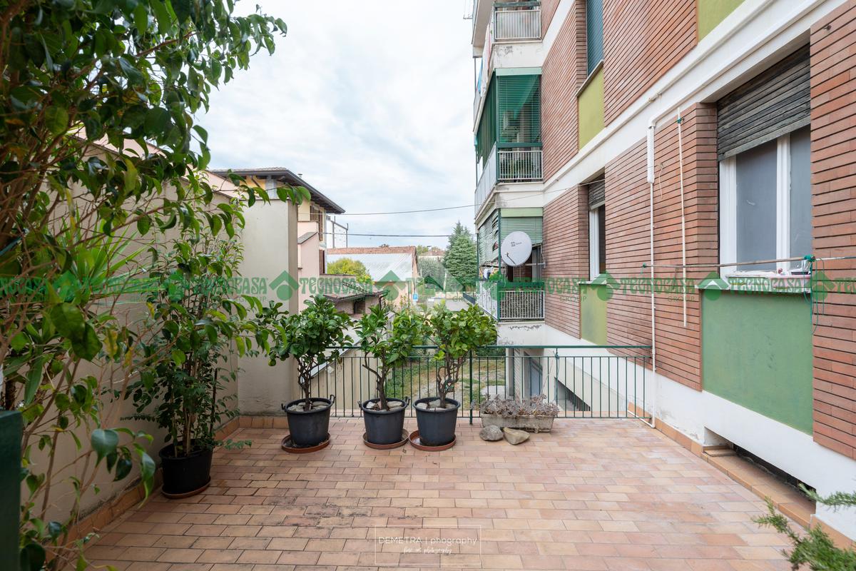 In posizione strategica, a pochi passi dal centro del paese e dalla stazione ferroviaria, proponiamo appartamento al primo piano caratterizzato da un raro e prezioso terrazzo di circa 50 mq esposto a sud.
