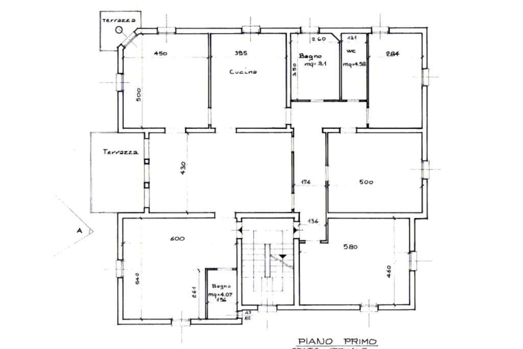 Il primo piano è composto da: ingresso, sala, tinello, cucina abitabile, quattro camere da letto, tre bagni, terrazzo e balconcino.