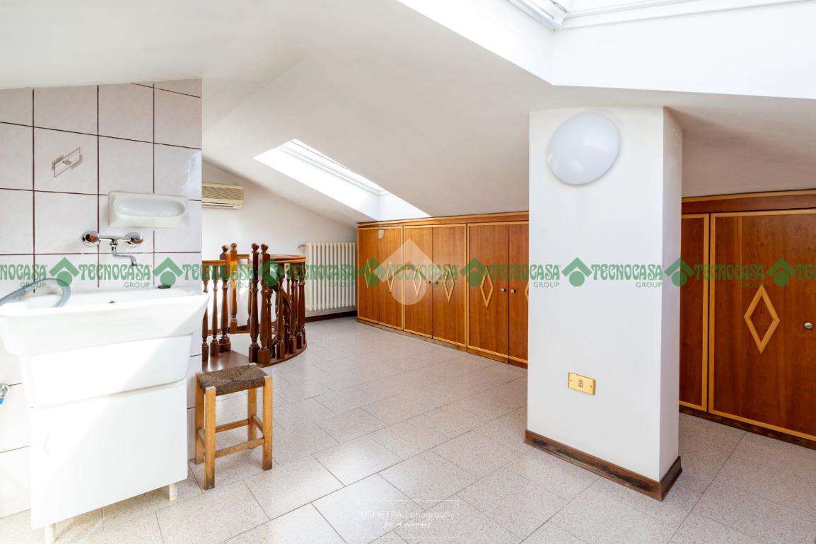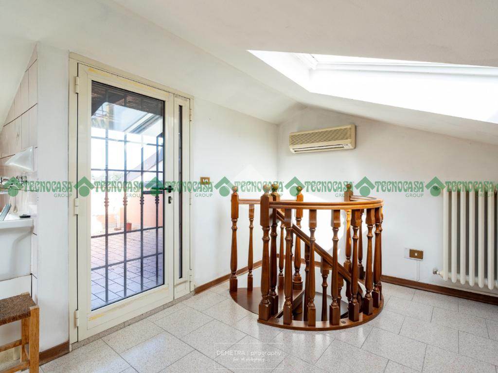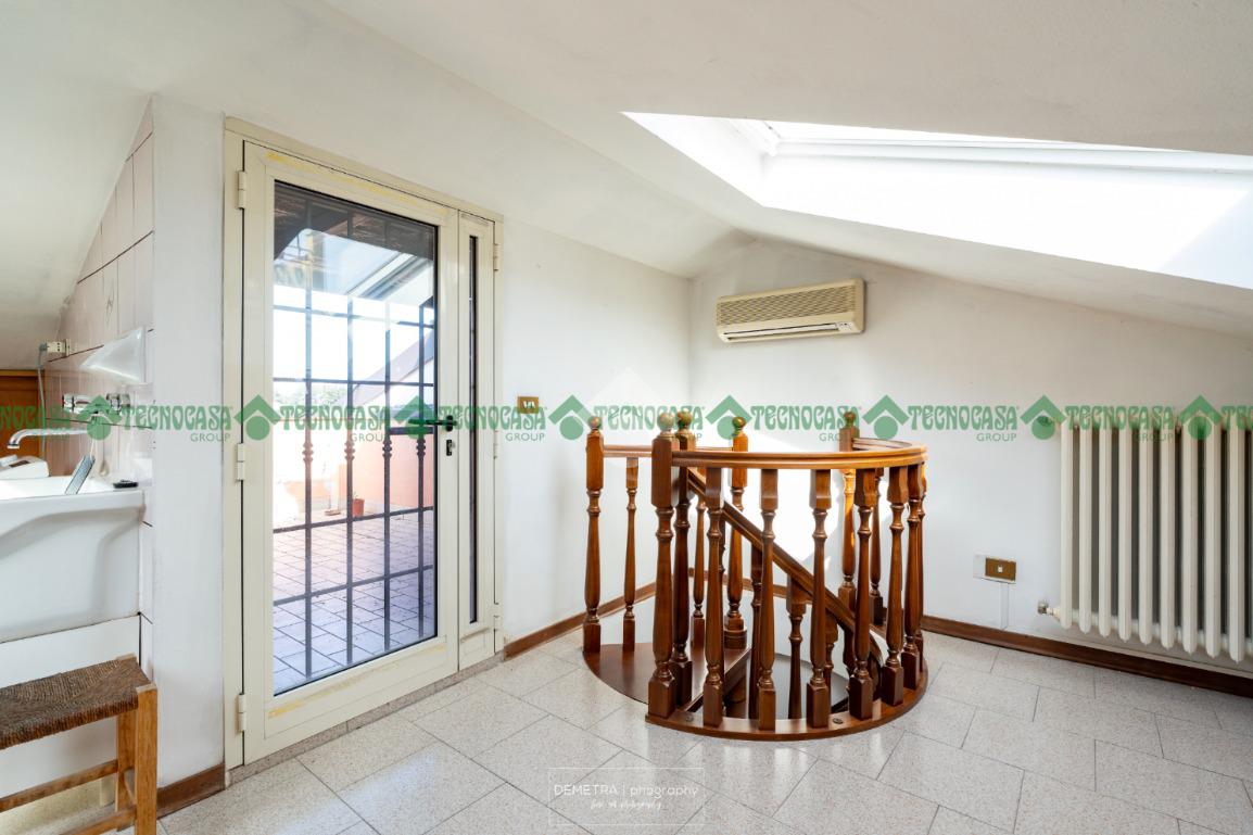 Salendo al livello superiore si accede ad una camera mansardata, perfetta da utilizzare come studio, stanza hobby o terza camera, impreziosita dalla presenza di un terrazzo con splendida vista, ideale per momenti di relax all’aperto.