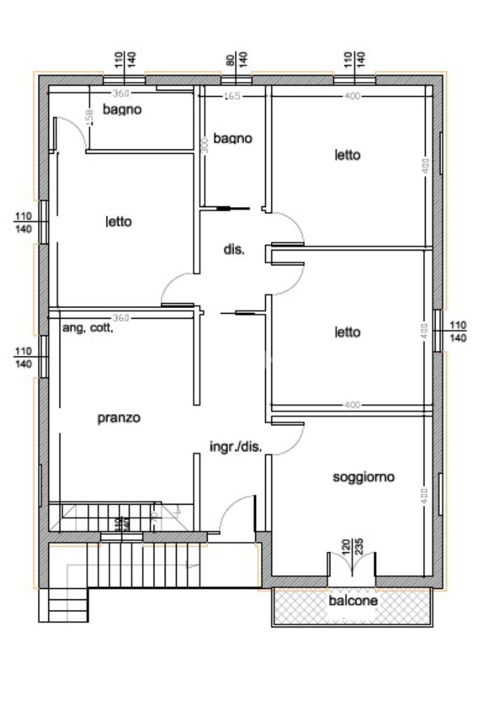 Al primo piano: ingresso, luminosa sala, cucina abitabile, tre camere matrimoniali e due bagni (di cui uno in camera).