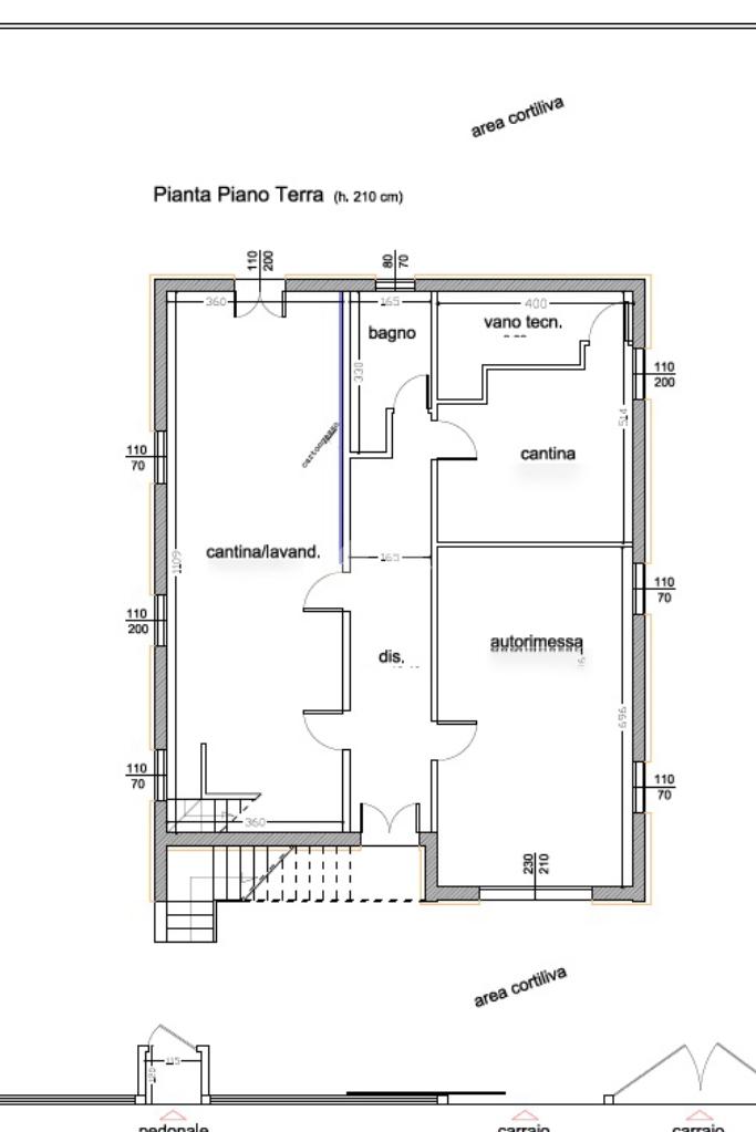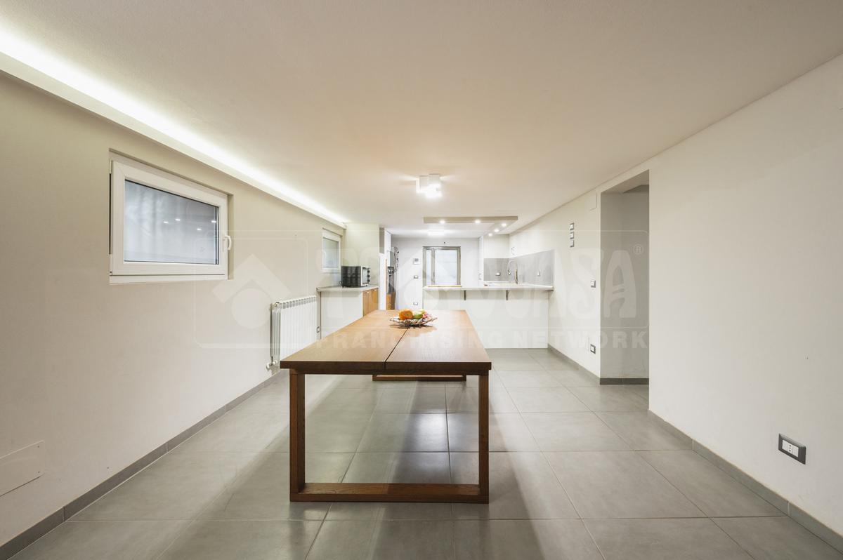 Al piano terra: ambienti ampi e già predisposti come secondo appartamento, con grande zona giorno con angolo cottura di 37mq, due camere da letto e due bagni.